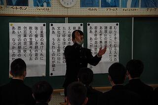 今朝は、「諸塚あいさつの日」でした。天気予報どおり寒い朝でしたが、生徒の皆さんは寒さに負けず元気にあいさつをしていました。校庭に粉雪がパラパラと舞いました。本格的な冬の到来です。皆さん、風邪などひかないよう気を付けましょう。