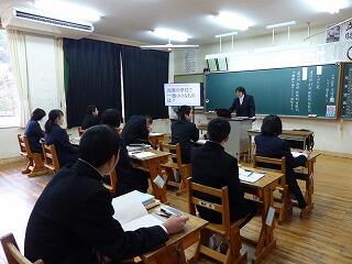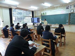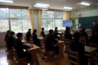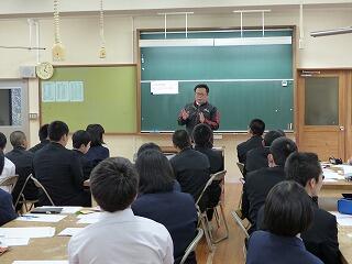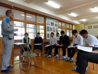 10月29日(火)に、職業人講話を行いました。本年度は、耳川広域森林組合、社会福祉協議会、九州電力諸塚工務所、諸塚村郵便局、諸塚村役場から講師をお招きしました。講話の内容は、各職場の業務内容を初め、進学先をどうやって決めたのか、また、どんな学生時代を過ごしていたのか、職業人としてどんな考え方を大切にしているのか、など大変参考になるものばかりでした。この講話を聞いた生徒たちは、自分の将来の生き方に関して思いを巡らし、進路選択の視野を広げる機会をもてたことと思います。講師の皆様、ありがとうございました。