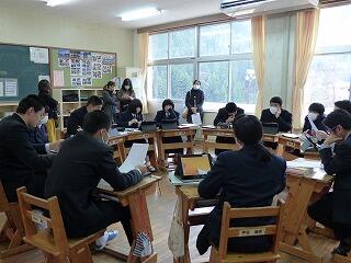また、この日の午後のふれあいタイムでは、生徒総会に向けての学級討議でした。「諸中のあいさつをどうするのか」「そのための具体的な取組は?」というテーマで話し合いました。諸中のあいさつは進化していきます。「めざせあいさつ日本一」