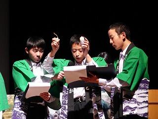 「輝け!青春物語(アオハルストーリー)~36人の絆を1つに~」のスローガンのもと、10月12日(土)に開催された第73回文化祭が大成功のうちに終わりました。当日は、生徒会のオープニングセレモニーに始まり、個人プログラムの「ビブリオバトル」や「英語暗唱」をはじめ、学年プログラムの郷土芸能(1年生)、修学旅行での学びと世界農業遺産についての発表(2年生)、学年劇(3年生)、そして全校合唱と、練習の成果が十分に発揮された発表となりました。どの学年ともに練習時間は限られていました。しかし、それぞれが自分に与えられた役割をしっかりと果たし、「成功させるぞ!」という思いを共有しながら準備を進めてきました。まさに「36人の絆」がひとつになった文化祭でした。