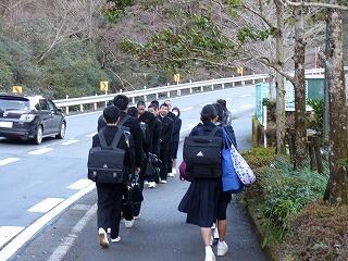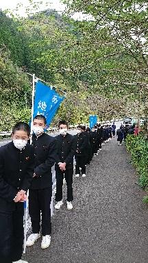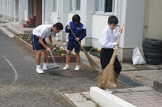 今朝は、諸塚あいさつの日でした。諸中生はいつものように、正門付近を清掃しながら、村内を行き交う方々に、元気よくあいさつを行いました。素晴らしい伝統になっています。走っている自動車にもあいさつする生徒達。自動車の中から会釈を返してくださったり、クラクションを鳴らしたりなど、返礼してくださることも、大変ありがたいことだと思います。