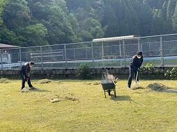 休みが続くと曜日の感覚が鈍ることがありますが、皆さんは生活リズムを崩さずに過ごせているでしょうか?今日、私たち職員はグラウンドの除草作業を行いました。休日の間に、ある保護者の方がほとんどの草を刈ってくださっていました。いつも学校へご協力くださり、ありがとうございます。おかげさまで、私たちは2時間くらいの作業でグラウンドをきれいにすることができました。それでも、2時間通して作業をしたのでおなかがぺこぺになりました。お昼ご飯は、ほとんどの職員がどんこ亭のお弁当を注文しました。登校日まで今日入れてあと4日、皆さんも健康に留意して生活してください。