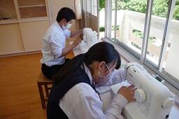 今日は、1年生と2年生の被服実習が行われました。本来なら1年生は調理実習なのですが、新型コロナウイルスの関係で行えませんので学習内容を変更しています。1年生は3,4校時、2年生は5,6校時に行いました。