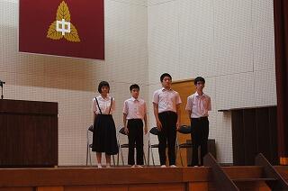 その後は、始業式を行いました。学年及び生徒会代表の4名の生徒が2学期の抱負を堂々とした態度で発表してくれました。行事の多い2学期です。3年生が全校生徒を引っ張り、一つ一つの行事を成功に導きたいという決意を示してくれました。