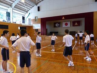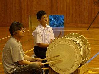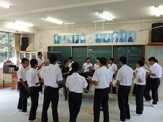 10月12日(土)は文化祭です。毎年、1年生が郷土芸能を披露していますが、本年度は南川地区に伝わる「箕舞」です。9月12日(木)に、初めての練習が地区の方々を講師に迎えて行われました。踊り手、太鼓、唄とそれぞれに役割がありますが、生徒たちは、とても1回目の練習とは思えないほど、みるみるうちに上達していきました。今後練習を重ね、息のぴったり会った「箕舞」を文化祭当日に披露してくれるものと思います。地域の皆様のご協力に感謝申し上げます。