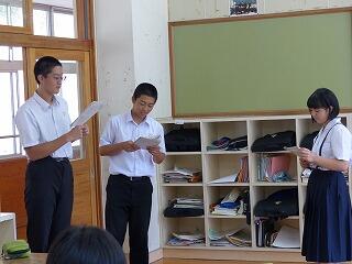 9月26日(木)は生徒会役員選挙が行われました。1,2年生の立候補者及び応援責任者がそれぞれに演説をしました。立候補者は選挙公約をもとに、自分が具体的に取り組みたいことを自分の言葉で発表していました。また応援責任者の人たちは、推薦理由をエピソードなどを交えながら、その人の良さを精一杯に伝えていました。演説を聞いている人たちも、メモをとりながら真剣に耳を傾けていました。