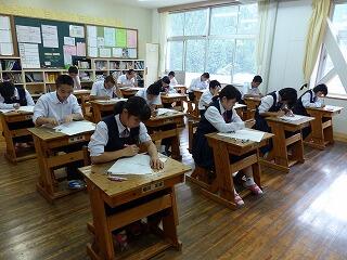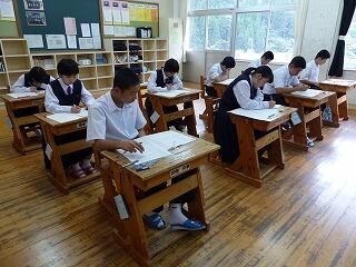 9月2日(月)と3日(火)の二日間は、3年生が実力テスト、1,2年生が課題テストです。今、体育大会の練習の真っ最中ですが、初日の2日(月)は、どの学年も真剣な表情でテストに望んでいました。運動に、勉強に頑張る諸中生を応援します!!