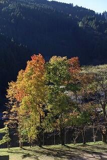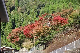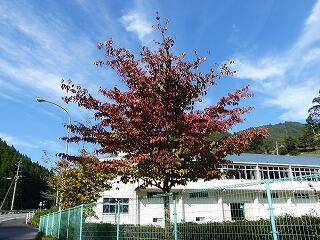 校庭が秋色に染まり始めました。諸塚村は、朝晩と日中との温度差があるために、山々の木々の色づきもよくなっていきます。