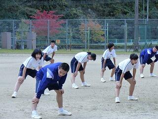 夕ランとは、「夕焼けランラン」の略称です。本校が、体力向上の取組として、放課後の時間を使って、グラウンドを走っています。この時期は、日が陰ると、とたんに気温が下がってきます。11月5日(火)に行われた「夕ラン」では、自分のペースで走る生徒、他と競い合う生徒など、それぞれに走っていたようです。