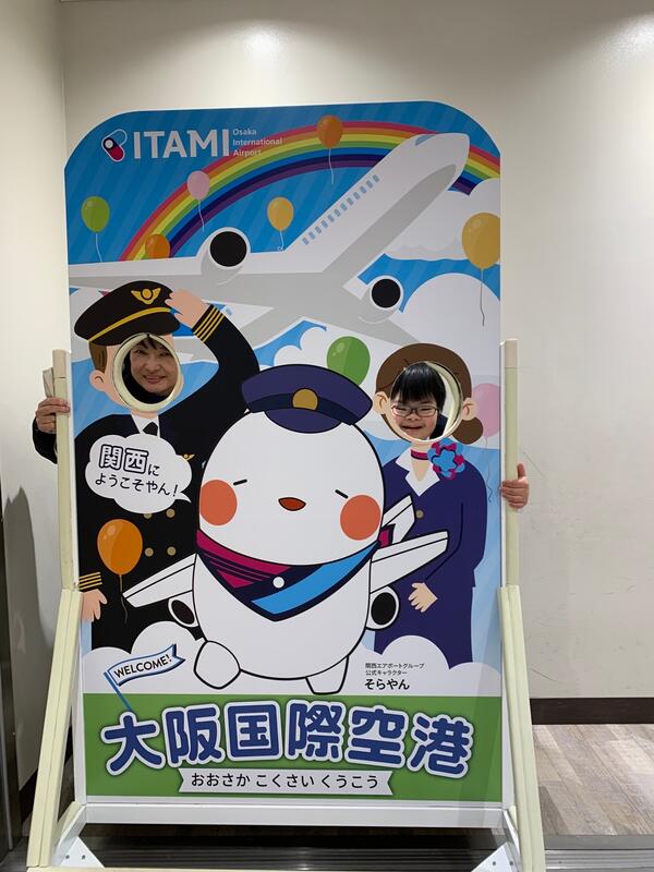 最初の生徒が、伊丹空港に着きました!各班の到着を待って、空港内で昼食です。