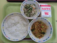 ドライカレーは、日本でオリジナルの進化をとげた日本生まれのカレーの一つです。「ドライ」という名前の通り、汁気が全く無いか、ほとんど無いカレーのことを指します。給食では、蒸し挽き割り大豆や豚レバー、スキムミルク、五種豆と五穀を入れて、栄養価を高めています。