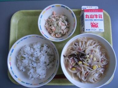 今日の五目うどんにはあさりが入っています。あさりには鉄分が多く含まれており、私たちの血液を作るのに必要な栄養素です。血液は栄養素を体のすみずみまで運んでいく大切なはたらきがあります。