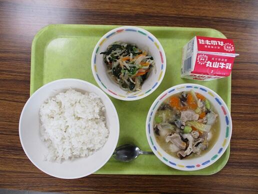 今日は「諸塚学校給食の日」です。今回も村内からたくさんの新鮮な野菜を届けていただいた他、延岡市に伝わる郷土料理「八はい汁」を出しています。八はい汁の名前の由来は、「八はいもたべてしまうぐらいおいしいから」や、「一丁の豆腐から8人分作れるから」などの説があります。県内に伝わる郷土料理も、給食でたくさん登場しますよ。