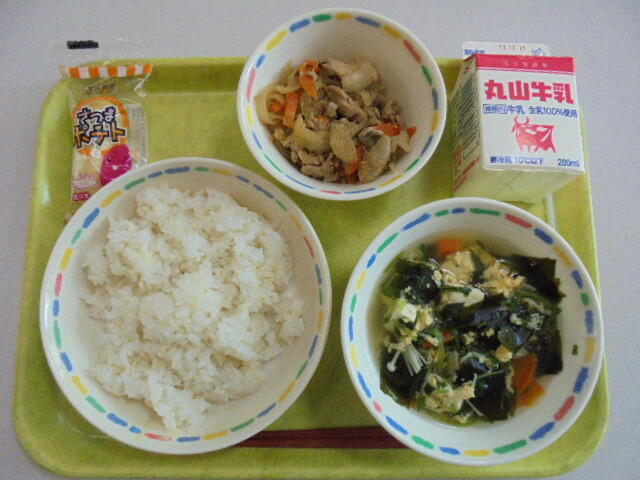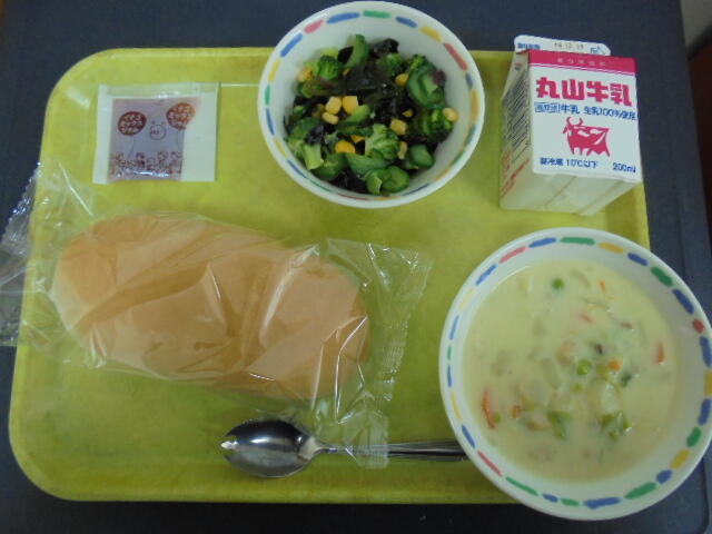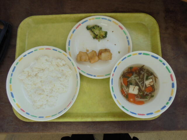 午前中の授業の時には、給食室から唐揚げのよいにおいが漂っていたようで、給食の時間をまだかまだかと待っている生徒もいたようでした。