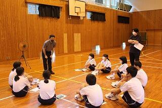 毎週水曜日の昼休みは、全校生徒で体育大会のダンスの練習をしています。フォーメーションやタイミングなど、椎葉先生とともに確認しました。少しずつ完成に近づいています。暑い中よく頑張っています。