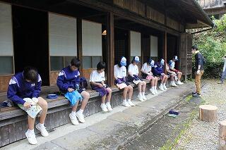 本日は、終日総合的な学習の時間でした。1年生は、諸塚村観光協会の御協力をいただき古民家体験学習を行いました。「やましぎの杜」で、箸作り、かっぽ飯・かっぽ鶏づくり、火おこし体験を行いました。小刀を駆使して苦労しながらもマイ箸を丁寧に作りました。