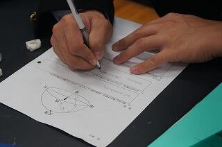 生徒は、シミュレーションソフトを使って各方位の星の動きを確認していきました。立体的なものの見方をすることに対して難しさはあったものの、グループの中で協力し合い、最後まで集中力を切らすことなく取り組むことができていたようです。先生方に見られての授業には、緊張感があったようですが、熱心に取り組む3年生の姿が印象的でした。
