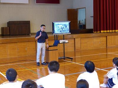 さて、当日は、まず全校集会がありました。広島、長崎に原爆が投下されたこと、また第二次世界大戦では、とてつもない数の犠牲者が出たことなどを、映像も交えながらの話でした。生徒たちは、真剣な表情で話に聞き入っていたようです。平和な世界をつくることが、人権尊重の基本であることを再認識できたことと思います。