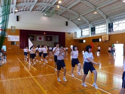 集会後は、体育大会の練習をしました。入場行進、校歌や「若い力」などの歌、さらにフォークダンスの練習に取り組みました。暑い中ではありましたが、一生懸命に頑張っていました。次の登校日は、19日(月)です。夏休みだからこそできる経験もたくさんしてほしいと思います。