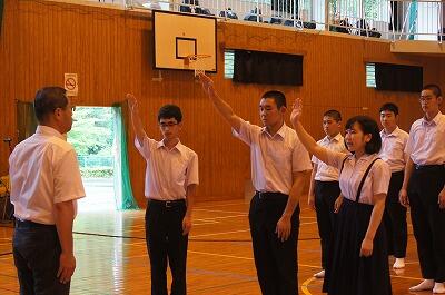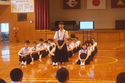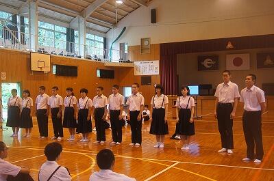 7月18日(木)に、中体連県大会の選手推戴式を行いました。本校から県大会に出場するのは、卓球、剣道、陸上(個人)です。それぞれに、頼もしい決意を述べてくれました。天候が心配されますが、これまでの練習の成果を思う存分に発揮して、最後まで「あきらめない」姿勢で試合に臨んでほしいと願います。健闘を祈ります!