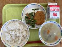 今日のコーンスープには豆乳を使っています。食べる前は「何のスープ?」と不思議に思っている生徒もいました。豆乳を使うことで、コーンスープをまろやかに仕上げています。