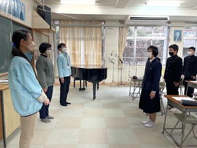 12月23日(金)は、2学期終了の日でした。授業、大清掃の後、音楽室にて終業式を行いました。各学年代表からの2学期を振り返っての発表の後、校長先生のあいさつで、コロナ禍、台風14号の被害にも、前を向いて、学校行事を成功させた事への賞賛、時に立ち止まって自分の足跡を振り返ることの大切さについての話がありました。昼食は「弁当の日」でしたので、各自手製の昼食を食べて、学級活動で締めくくりました。前日からの積雪も心配されましたが、無事最後の一日を終えることができました。
