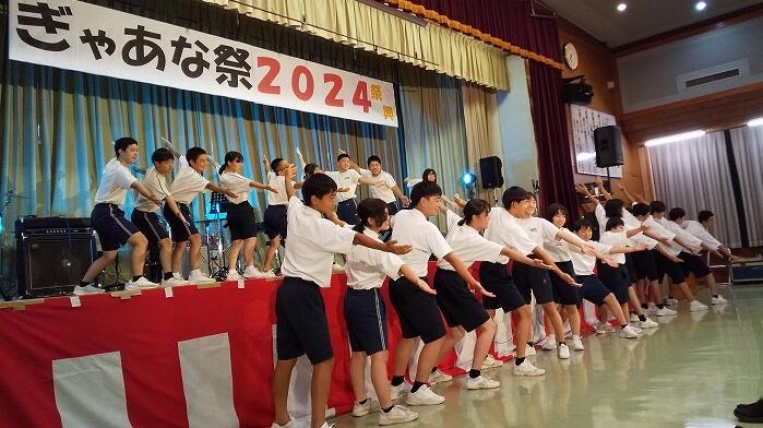 9/14(土)に諸塚村の中央公民館で開催された「ぎゃあな祭」に諸塚中の生徒が参加して、ダンスを披露しました。笑顔いっぱいの演技に村民の皆様から盛大な拍手をいただきました。