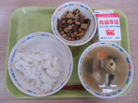 根菜つくねの「つくね」は、こねて丸めるという意味をもつ「つくねる」が元々の語源だと言われています。今日はごぼう・人参・れんこんなどの根菜が入ったつくねでした。