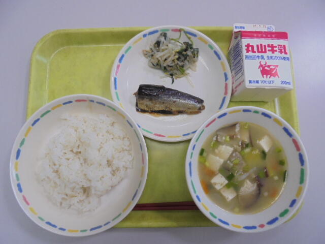 今日は給食が始まった明治22年の献立にちなんで、鮭の塩焼きをつけました。給食感謝集会では給食の歴史についても学んだので、生徒たちは、鮭がついている理由をよく理解しているようでした。