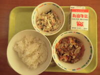 今日はお正月献立です。雑煮に入れるもちは、もちが伸びることから、「寿命が延びる」縁起の良い食べ物とされています。給食ではもちの代わりに米粉の団子を入れています。