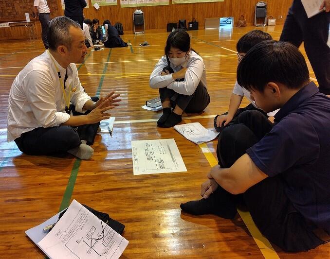 宮崎県キャリア教育支援センター(宮崎県教育研修センター)主催、諸塚村教育委員会共催の対話型キャリア教育プログラム「ひなた場(対話で大人と子どもがつながるあたたかな場)」が10月21日(月)の午前中に諸塚中体育館で行われました。