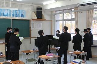 音楽の授業では、卒業式の歌の練習をしました。3年生の授業を見学すると、パートごとに練習し、最後は全員で合わせて歌いました。大事なところは、楽譜にメモを書き込んでいました。3年生の皆さん、いい感じで仕上がってきましたね。卒業の日まで、登校するのはあと28日。