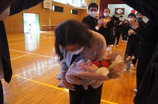 本日は離任式が行われました。とうとうこの日がやってきました。今回の定期異動でご退職も含め本校職員7人の異動がありました。離任式では、一人ずつあいさつをしてもらいました。保護者の方にも「お世話になりました。」とお礼を言っておりました。生徒代表お礼の言葉では、慎之介さんが各先生に対して一言ずつお礼の言葉を伝えてくれました。とても寂しくなりますが、お互い頑張りたいと思います。転出される先生方の今後のさらなるご活躍をご祈念申し上げます。