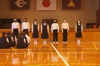 本日、地区中学校総合体育大会選手推戴式が行われました。校長の激励のことばの後、各部活動からあいさつがあり、大会に向けての抱負を語ってもらいました。