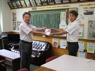 本日、諸塚村椎茸部会から諸塚幼小中給食会へ諸塚村産乾椎茸9キロを贈呈していただきました。村産椎茸消費拡大を目的として、小川重好会長より目録をいただきました。貴重な村産椎茸をいただき感謝しております。諸塚村の学校給食に大事に使わせていただきます。