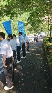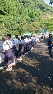 生徒会長の柊平さんが「県大会に行けない人の分まで頑張ってほしいです。皆さんがやり切った顔で諸塚に帰ってくることを楽しみにしています。みんなで応援しています。健闘をお祈りしています。」と激励のことばを言ってくれました。