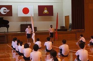 7月14日(水)に、第72回宮崎県中学校総合体育大会にむけて推戴式を行いました。今回の推戴式は、花和さんが進行をしてくれました。