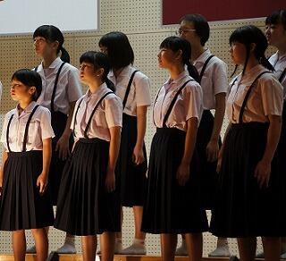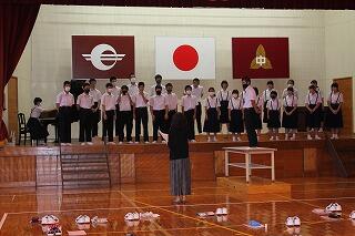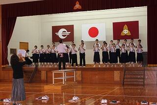 本日、4・5校時の合同音楽では、文化発表会にむけた全校合唱、合奏の練習を行いました。体育館のステージでも練習をしました。日に日に上手になっていますね。当日が楽しみです。