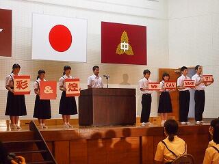 10月17日(日)に、第75回文化発表会を開催しました。今年のスローガンである「彩&煌 ~WE CAN MAKE IT !~」のとおり、1人1人がカラフルに個性を放ちながら、煌めいた文化発表会となりました。28人よくがんばりました。御参観いただいた皆様ありがとうございました。