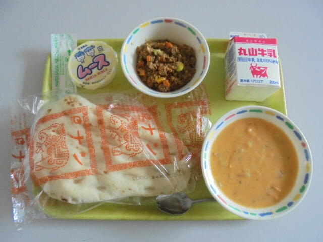 今日のナンとドライカレーは、諸塚幼稚園、諸塚小学校のリクエスト献立でした。