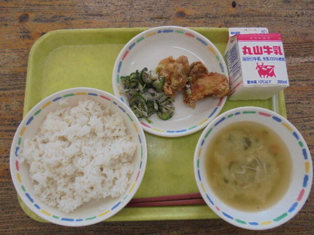 今日は、諸塚小学校1年生のリクエスト献立の唐揚げでした。