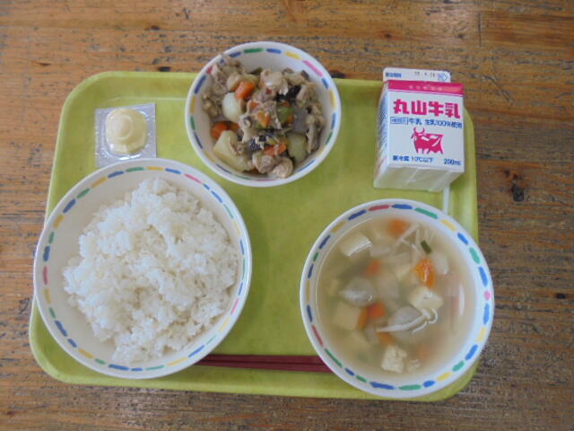 春野菜の味噌汁は、じゃがいも、キャベツ、たまねぎ等の春が旬の食べ物を入れて作りました。旬のものは栄養満点です。ご家庭でも、ぜひ、献立に取り入れてみてください。