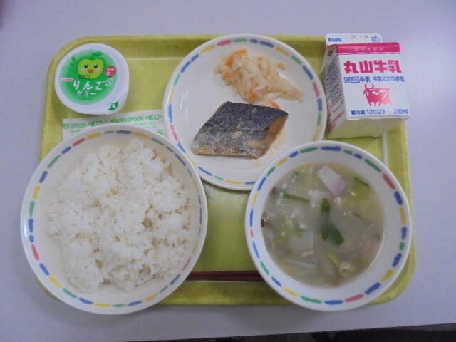 今日は給食が始まった明治22年の献立にちなんで、鮭の塩焼きをつけました。給食感謝集会では給食の歴史についても学んだので、生徒たちは、鮭がついている理由をよく理解しているようでした。