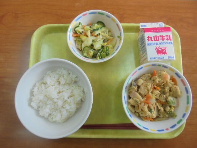 今日のチキンとポテトのケチャップ煮には、ぜひ食べてほしい芋類や大豆を入れて、食べやすい味付けで作りました。生徒からもおいしかったと言う声が聞かれました。