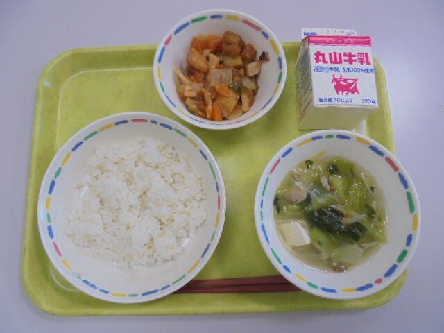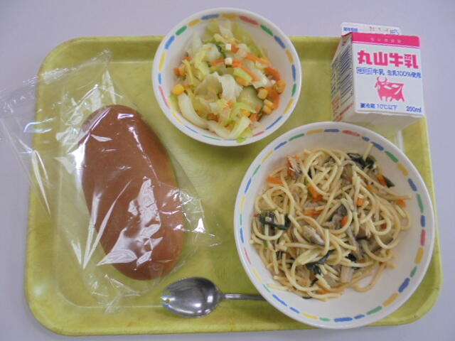 生徒たちも献立をチェックしており、「パンがありますね!」という声も聞かれました。黒糖パン、おいしかったそうです。