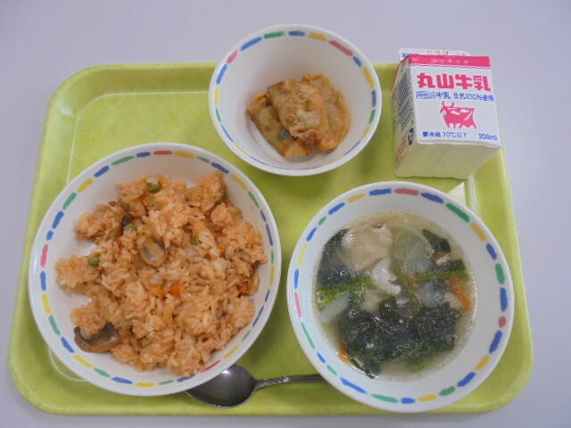 彩り豊かな給食を、生徒たちは、おいしそうに食べていました。
