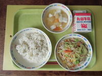 暑い時期にはさっぱりとしたものがおいしく感じますね。冷やし中華はゆでて冷やした麺の上に、色々な具をのせて、かけ汁をかけて混ぜながら食べる料理です。1学期の給食最終日に、さっぱりといただきました。
