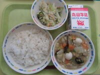 今日の酢みそ和えに使っている「酢」には、疲れたときに元気になる効果や、食欲が無いときに食欲を高めてくれる効果があります。しっかり食べて午後も元気に過ごしましょう。