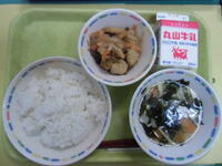 今日は給食でも人気のからあげについてのお話です。から揚げは、江戸時代の初め頃、中国から伝わってきました。当時のものは、豆腐を小さく切って揚げ、酒としょうゆで煮たものでした。鶏肉のから揚げが登場したのは、昭和7年頃、東京の銀座の食堂だと言われています。今では塩味やにんにくしょうゆ味などなど、様々な味付けがありますね。給食のから揚げも、下味をつけて一つひとつ丁寧に揚げていますよ。