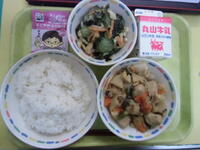 今日は給食でも人気のからあげについてのお話です。から揚げは、江戸時代の初め頃、中国から伝わってきました。当時のものは、豆腐を小さく切って揚げ、酒としょうゆで煮たものでした。鶏肉のから揚げが登場したのは、昭和7年頃、東京の銀座の食堂だと言われています。今では塩味やにんにくしょうゆ味などなど、様々な味付けがありますね。給食のから揚げも、下味をつけて一つひとつ丁寧に揚げていますよ。